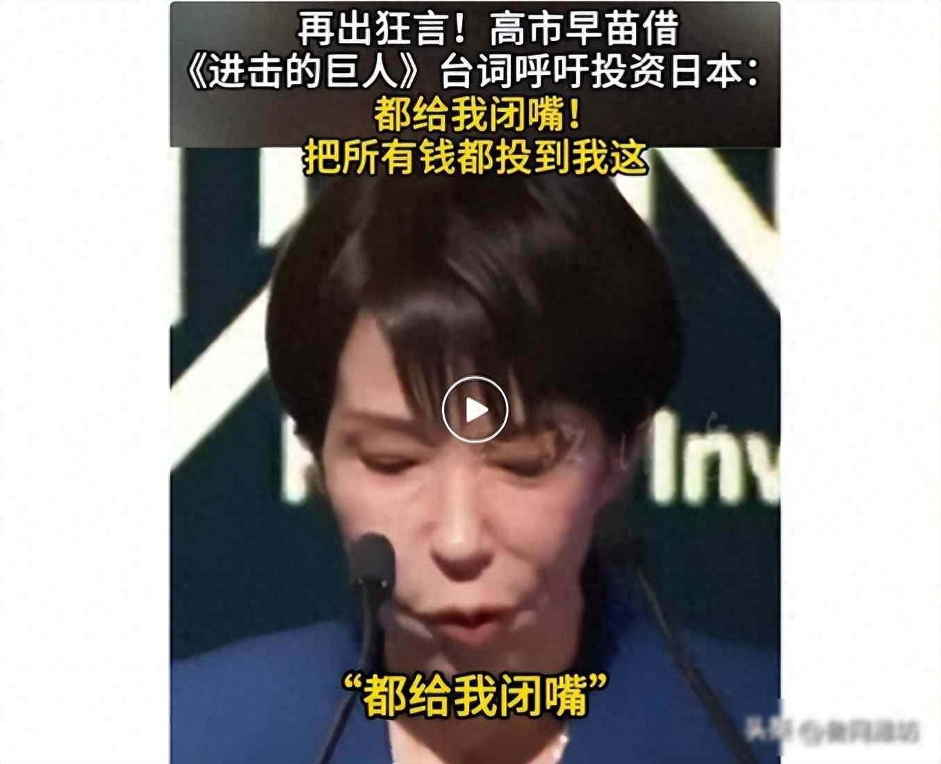 当天还有个更炸的新闻,日本首相高市早苗在投资会上直接喊出《进击的巨人》里那句“都给我闭嘴,把钱投到我这儿来”,说是想拉投资,可这话听着就不太对劲,日本政府债务早就超过GDP两倍了,彭博社和路透社早就批得不行,这时候还搞这种花活,简直是在火上浇油。