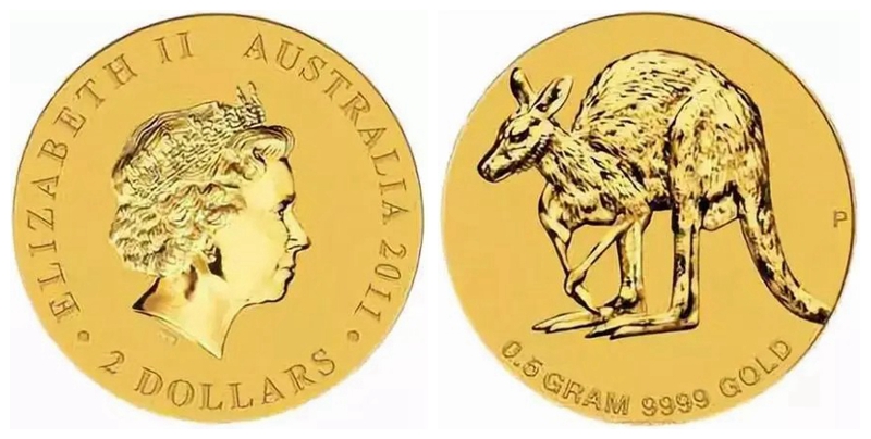 澳大利亚袋鼠金币:正面图案随君主更替有所变化,背面的袋鼠或单只或多只,每年换新很是用心。