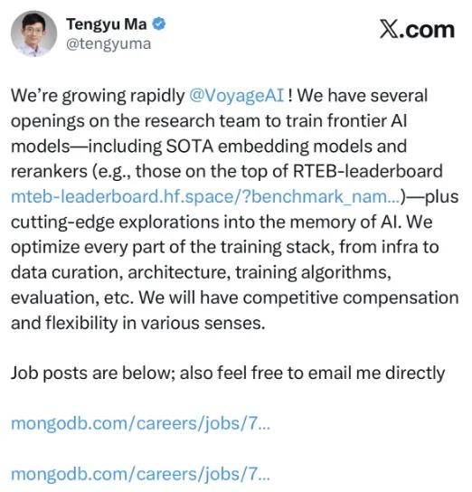 很多著名冲浪网友,比如英伟达Jim Fan老师、清华姚班校友斯隆奖得主马腾宇都纷纷在自己的上拉起了招聘横幅。