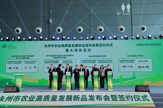 11月15日上午,永州市农业高质量发展新品发布会暨签约仪式在长沙国际会展中心中国中部(湖南)农业博览会现场举行。会议全面展示了永州农业高质量发展的新成果、新风貌,进一步提升了永州农产品的品牌影响力与市场竞争力。永州市委副书记、统战部部长侯文,市政协副主席、市工商联主席韩顺华等领导出席。中国农业科学院、浙江清华长三角研究院部分专家,澳门君天、香港加禾农业、香港百利高集团、香港区泰记、香港创辉蔬果、步步高、珠海华源农业等境内外众多企业客商参加。