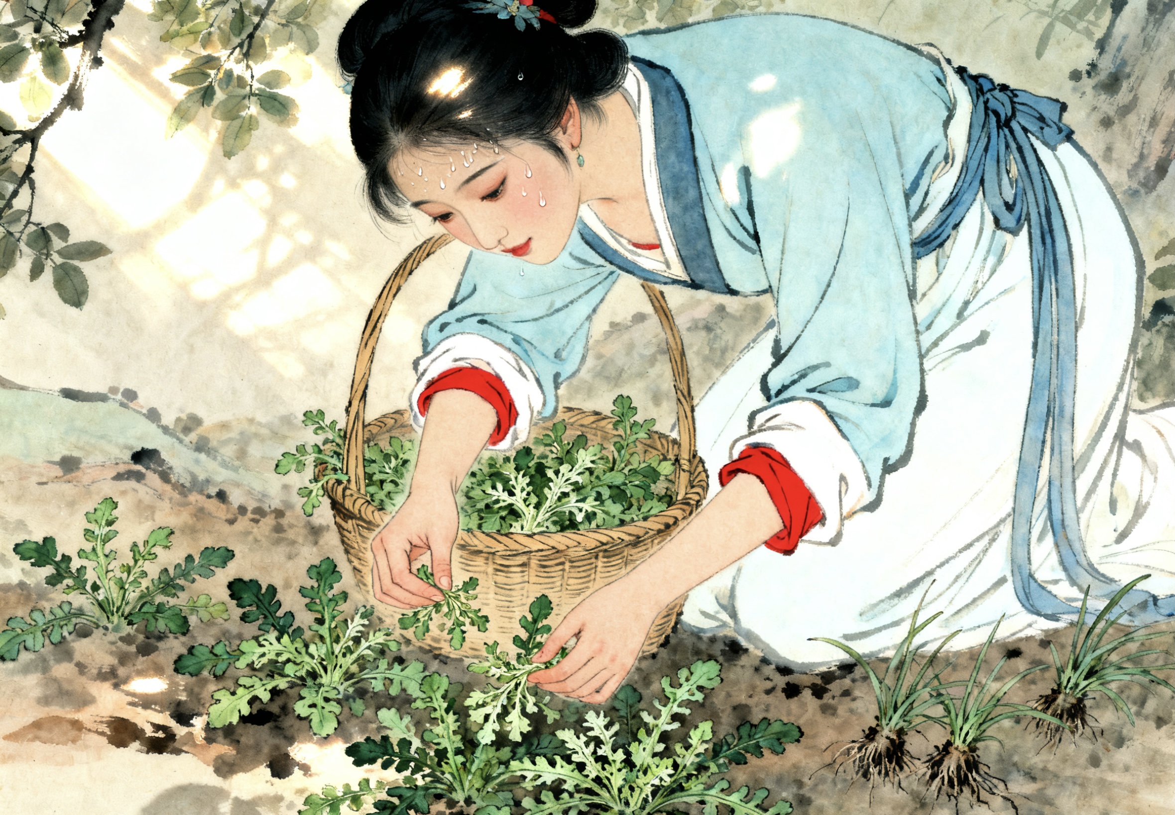 到了山坳,春桃弯腰挖荠菜,手指麻利地挑着嫩苗,不一会儿篮子就满了一半。春杏却没心思挖,蹲在旁边拔狗尾巴草,时不时瞟一眼春桃,见她额角渗着汗,嘴唇也干了,心里竟有点暗爽。