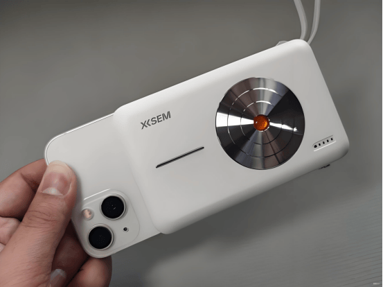 它在外观设计上非常人性化,厚度仅有18.5mm的超薄机身设计,重量仅有204g,只手可握,拿在手上充电,也不会觉得有重量感。将它贴住手机背面充电使用的同时也并不会遮挡摄像头模组,完全不影响各种场景下手机的正常使用。
