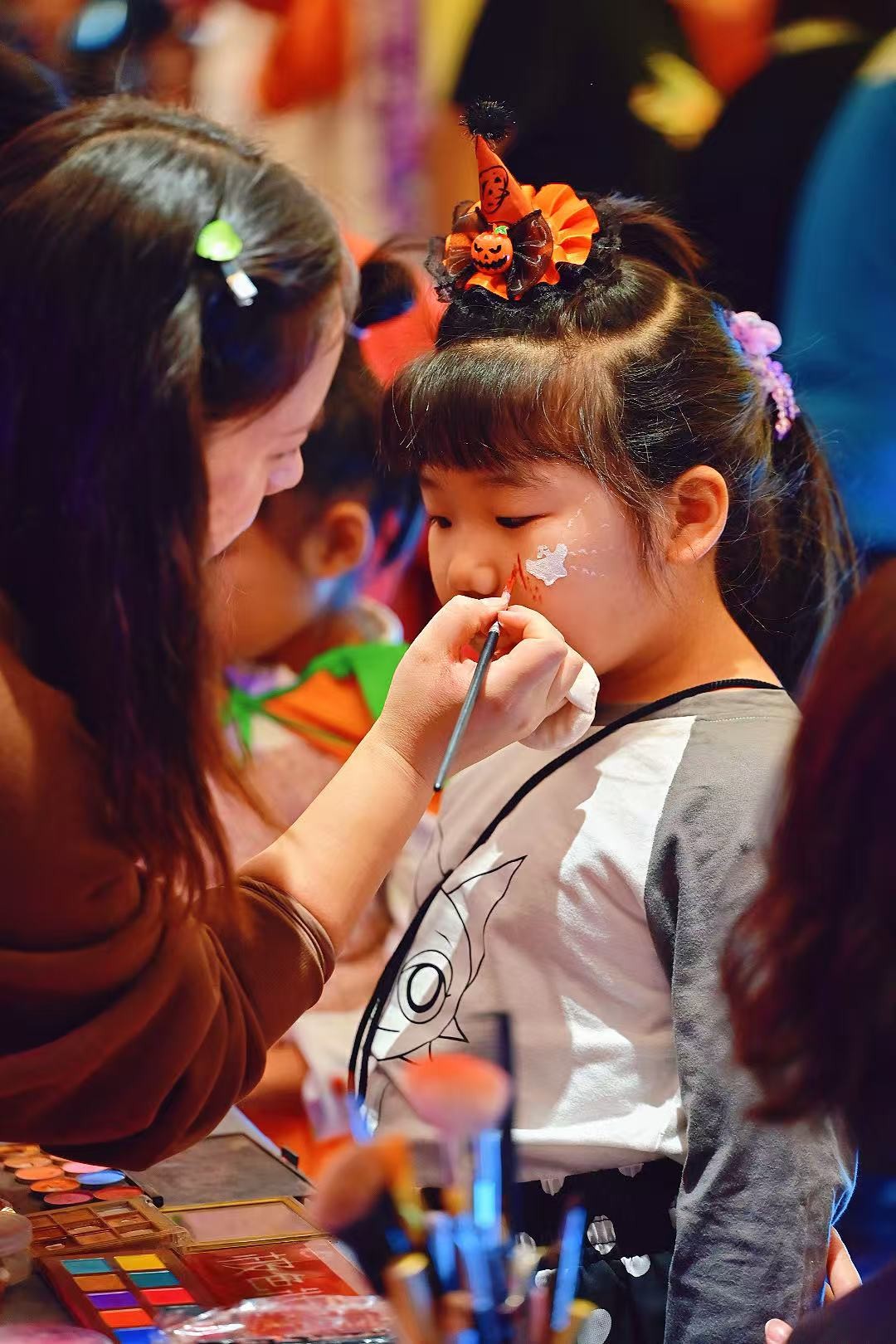 餐厅门口特设儿童专属化妆区,特邀专业彩妆师坐镇,为用餐儿童提供免费万圣造型。从软萌的南瓜精灵到可爱的幽灵宝宝,风格迥异,多种选择。小朋友们在变装结束后,便开启“不给糖就捣蛋”的讨糖之旅,穿梭于酒店主题场景中收集甜蜜与惊喜。