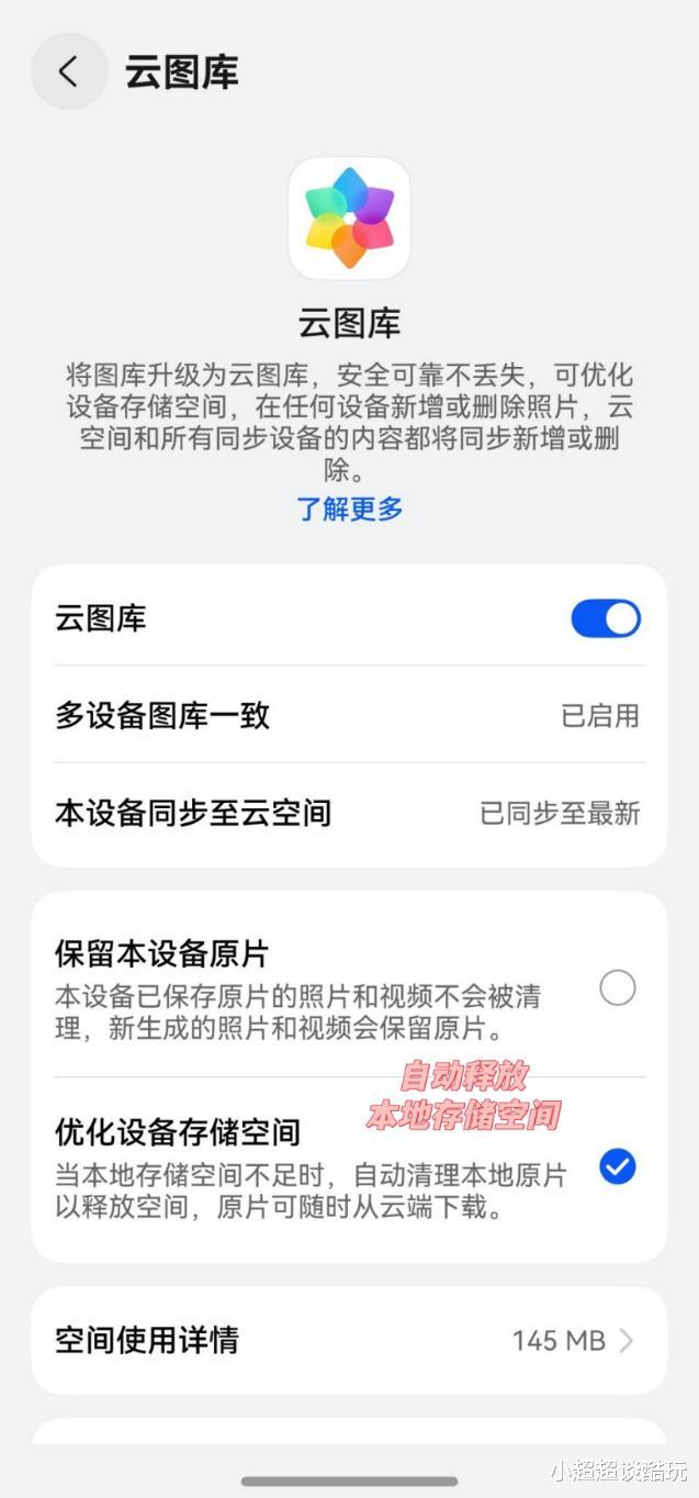 订阅后第一时间打开云空间的“云图库”功能,并且开启“优化设备存储空间”选项。它会自动把我手机里所有高清原图和视频上传到云端。同时,它还会智能地把那些我不常翻看的老照片,在手机本地替换成了一个个很小的“预览图”。就这么一个操作,我的手机可用空间一下子多出了十几个G!我那些珍贵的回忆一张没删,全都安全地在云端存着,完美!