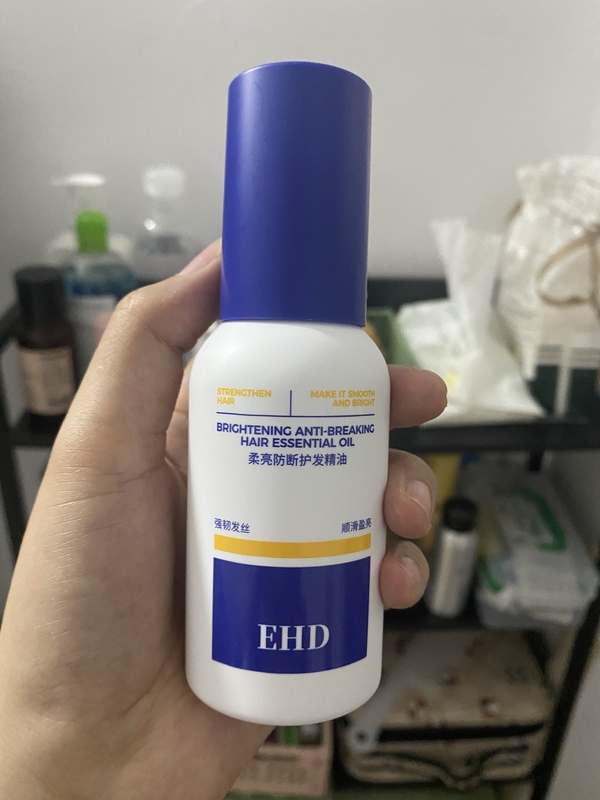 整体护发表现尚可,我在吹风半干状态使用EHD时,头发明显柔顺且光泽感提升。技术上结合深层滋养和轻盈精油渗透,能够修护受损发丝并在表面形成薄膜锁水。好处是梳理时发丝不打结,发尾触感柔软。缺点是干发涂抹容易出现假滑感,顺滑效果维持时间短,风一吹就又有轻微打结,持续性一般。
