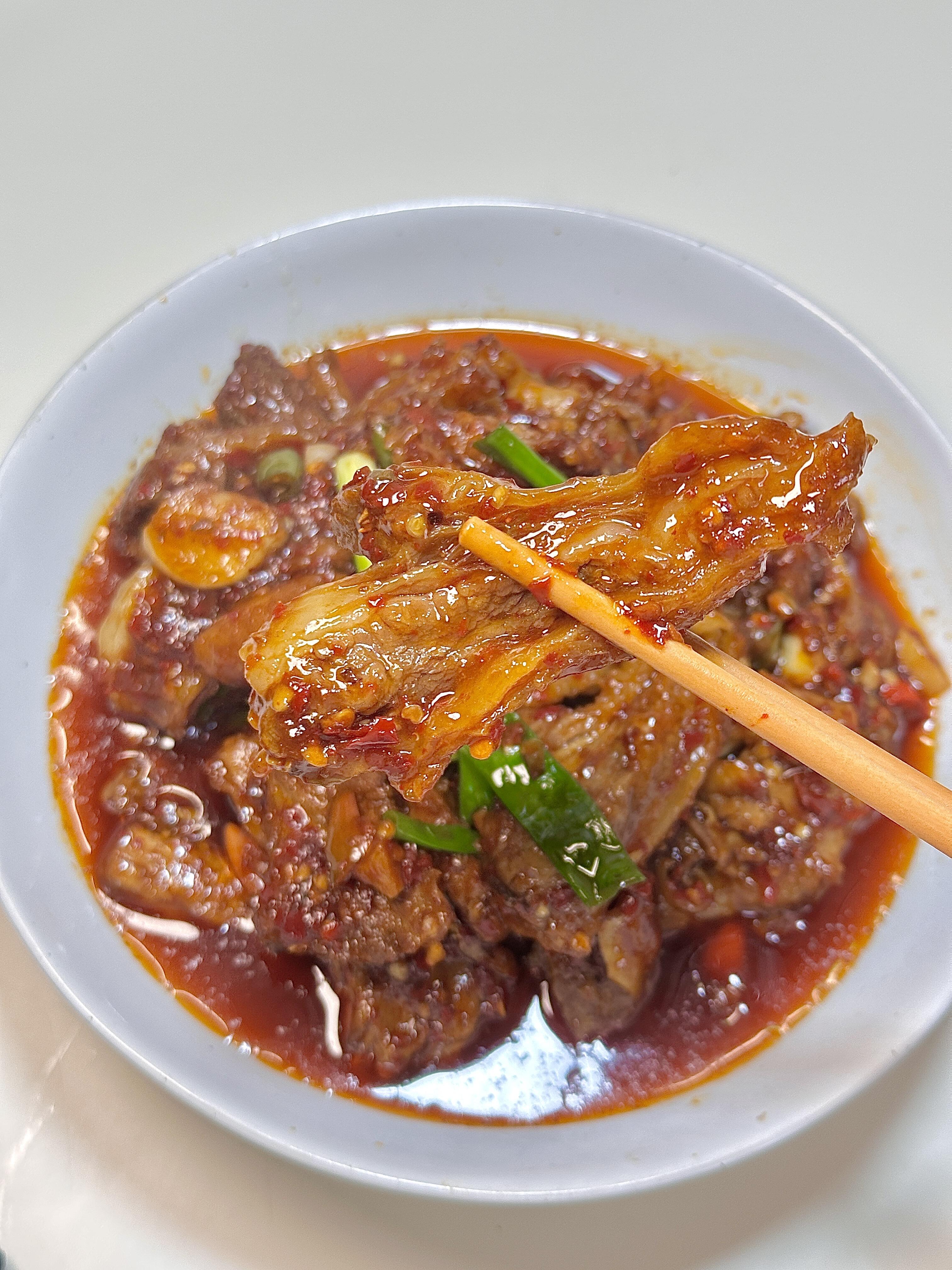 一盘色香味俱全的爆炒香辣牛腩就完成了!你看这牛腩,色泽红亮,辣味扑鼻,是不是已经迫不及待想要尝一口了?