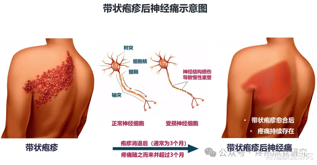 PHN是指皮损愈合后1个月及以上仍持续存在的疼痛,神经病理性疼痛的比重逐步增大。