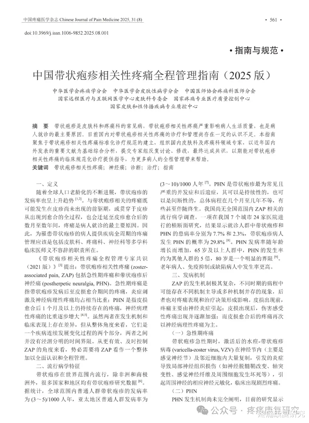 《中国带状疱疹相关性疼痛全程管理指南》2025版