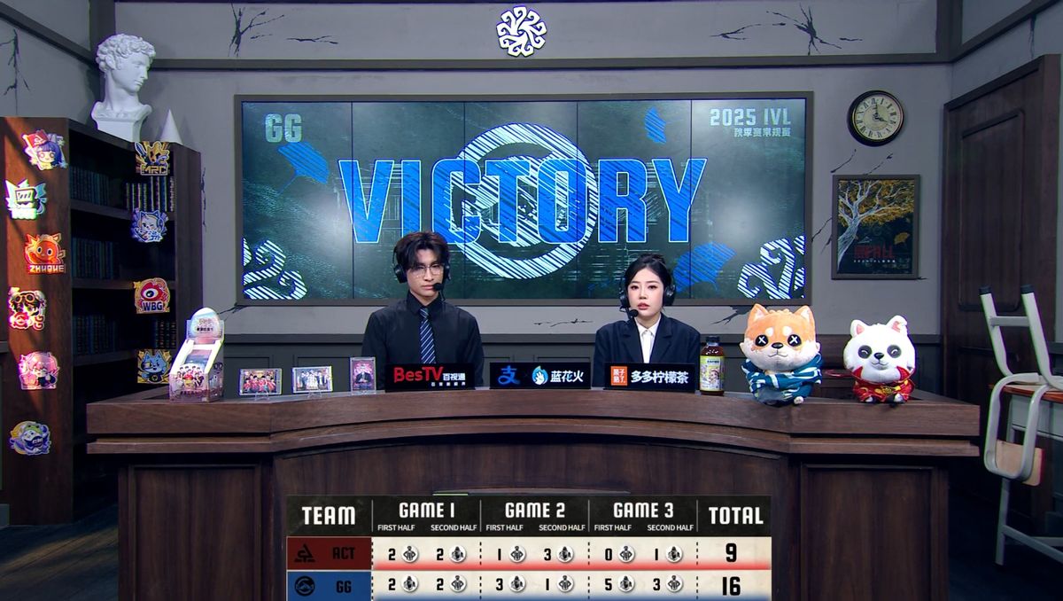 最终,成都GG以1胜2平0负(16:9)的比分击败ACT,获得本场比赛的胜利。