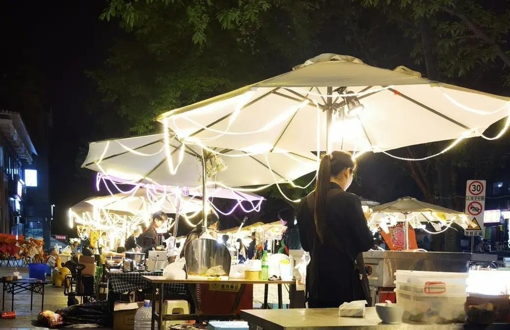 朋友把车停在一条夜市街口,他刚下车,就被扑面而来的味道撞了一下,碳火味、油烟味、奶茶的甜味混在一起