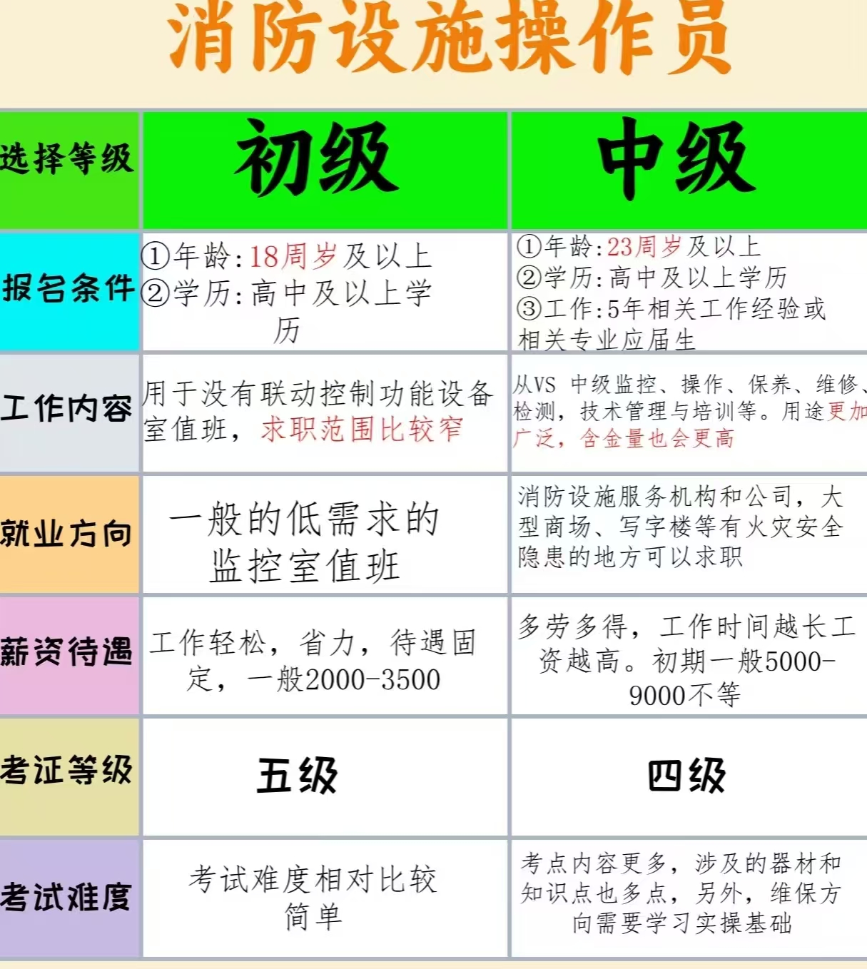 最近好多宝子问消防设施操作员证的事——初级刚报上,还能考中级吗?初级和中级到底差在哪儿?今天一次性说清楚,干货码住!