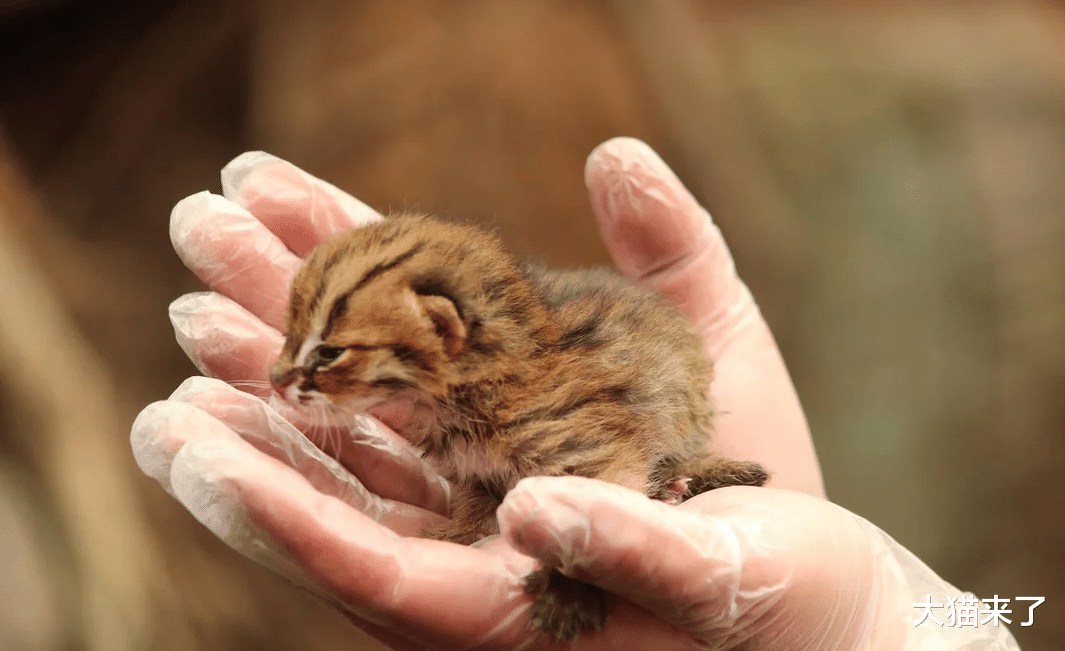 结果呢,森林部门许多工作人员赶来一看,真相大白:这并不是什么凶猛的豹子宝宝,而是地球上最小的猫科动物——锈斑豹猫的幼崽!