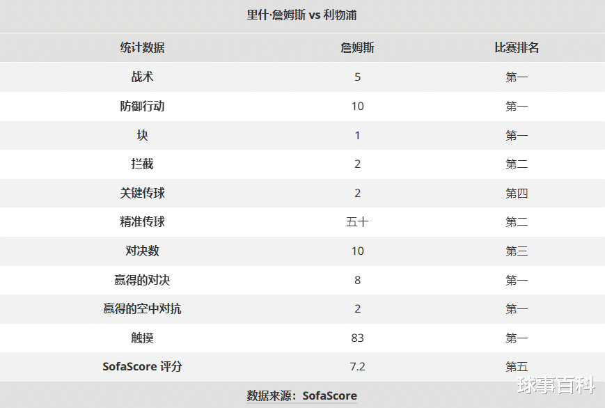 ——铲球、防守动作、封堵、对抗成功、空中对抗成功、触球次数全部全场第一;