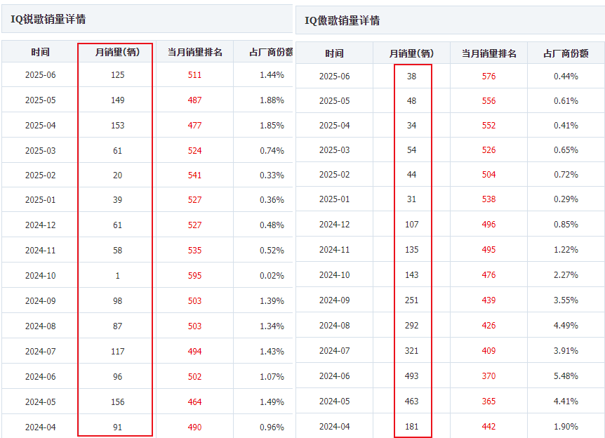 凯迪拉克IQ锐歌自2022年上市以来,月销量最高921辆,最近18个月销量最高不足200辆,多个月份月销量徘徊在2位数。