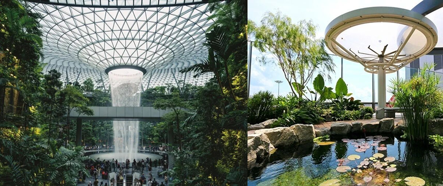 在景点布局上,以高达40米的室内瀑布“雨旋涡”作为核心视觉焦点。白天,它宛如一片森林仙境,静谧而梦幻;夜晚,则变身为灯光与声光交织的奇幻秀场,成为众多游客争相留念的热搜Hea。瀑布周围的“森林谷”生长着数千棵树木,形成垂直绿化的生态景观,有效缓解旅途中的疲惫。各个航站楼还设置了特色主题花园,比如T1的睡莲花园、仙人掌花园,T2的梦幻花园、向日葵花园,和T3的蝴蝶园,让自然元素成为旅客的常伴。