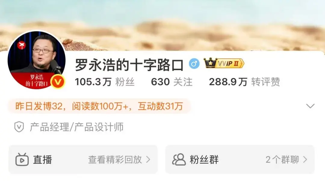 后来大家都知道罗永浩听劝了,8月18日,他将微博昵称从“罗永浩·钮钴禄”更改为“罗永浩的十字路口”,并宣布进军播客领域。罗永浩表示,这档节目将聚焦科技、人文、世界格局、时代变迁以及人生抉择,邀请来自不同领域的重量级人物进行深度对话。每期节目时长预计为3至5小时,重点在于思想碰撞与深入交流。