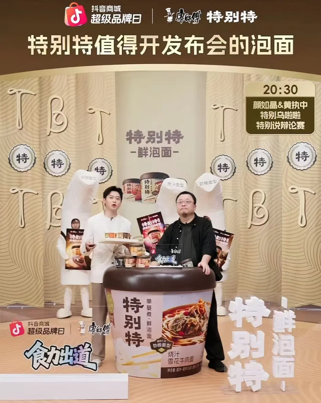 8月21日晚,罗永浩现身康师傅官方抖音直播间,以极大的热情推销这款“特别特”泡面。他反复强调这款产品“用泡的速度达到煮的鲜度”,甚至打出了“重新定义泡面”的标语。