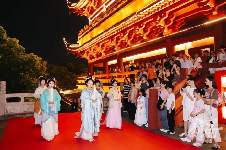 此外,位于吴山上的城隍阁一直是杭州人中秋赏月的胜地之一。中秋夜,站在观景平台之上,一面是星光点点的西湖,一面是明月高挂的城景,尽览江、湖、山、市、景、月的景色之美,还能观赏拜月古礼,参与养生游园会,享一个“湖山韵味”的“城隍中秋夜”。这里不仅有赏不尽的西湖美景,乐音袅袅的月下音乐会,还能投壶、猜谜,别有意趣。