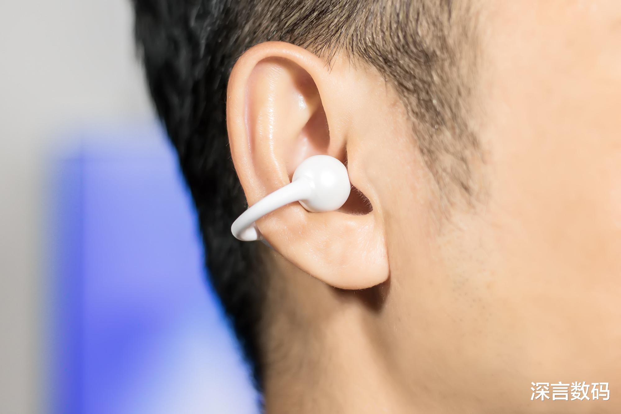 朗科WTS1无线耳机在佩戴感受方面的表现很不错,其采用了轻量化设计,单只耳机的重量仅为3.7g,比不少半入耳或入耳式耳机还要轻,C型支架的夹持力度适中,与耳廓的接触面积较宽可均摊受力,能避免长时间佩戴的压迫感与不适感,能实现更舒适的佩戴感受,还具备IPX4防水等级,户外运动时更安心。
