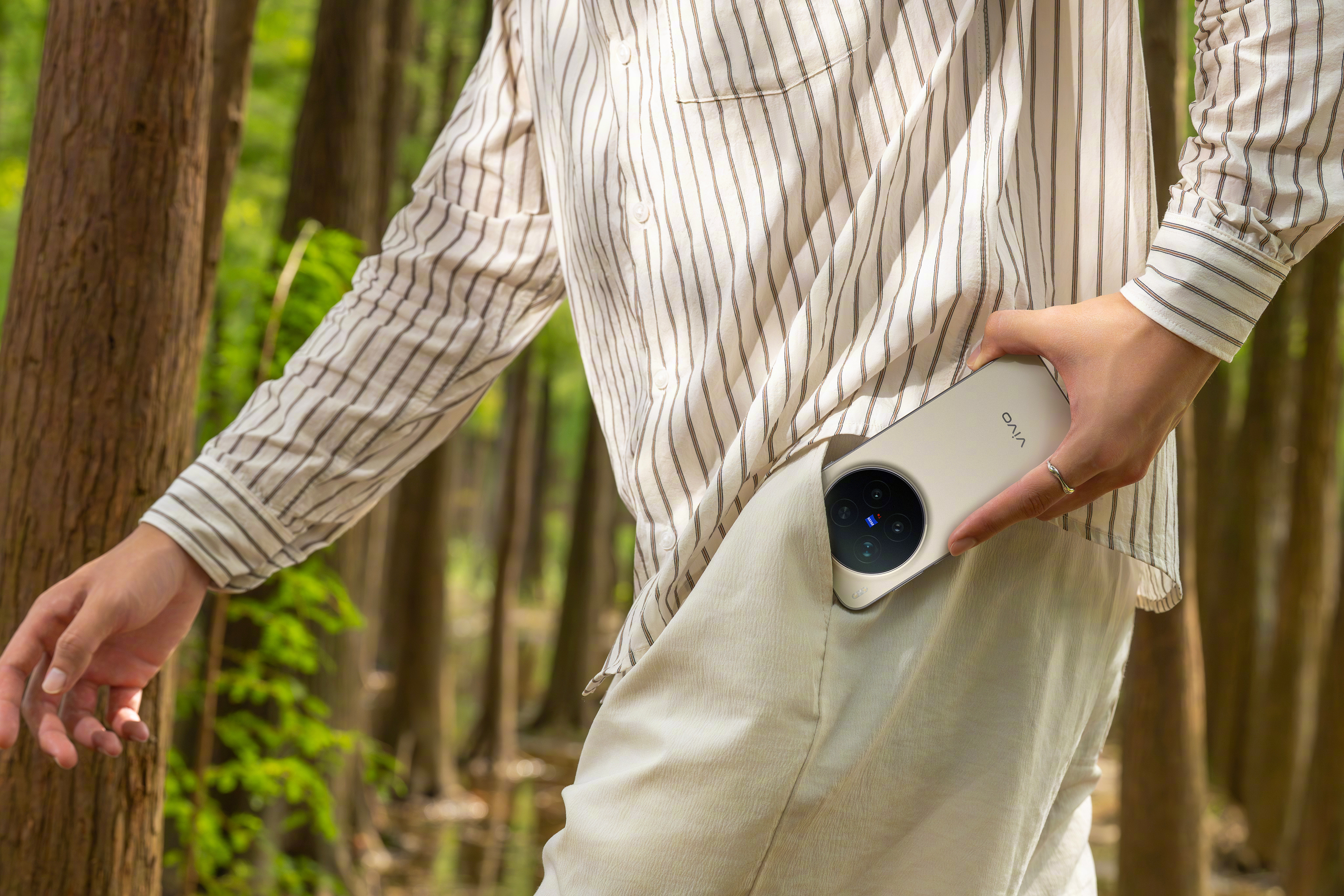 X300 Pro外观最明显的变化是变“直”了,屏幕、中框甚至后盖都做了直边设计,厚度7.99mm,也比老款薄了不少。后摄模组用了悬浮水滴冷雕玻璃,还加了黄铜色线条装饰,比X200 Pro的大圆圈好看,凸起也没那么显眼了。