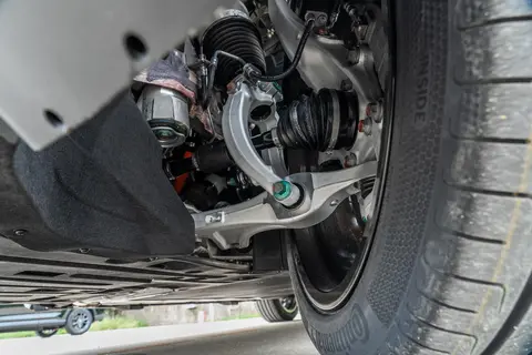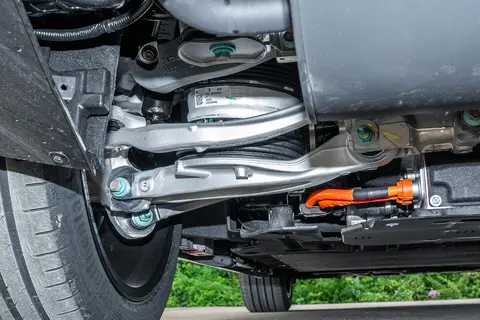 空气悬架的表现同样可圈可点,它能根据路况自动调节高度和硬度。行驶在崎岖路面或坑洼地带时,悬架会变软,能过滤掉大部分震动,坐在车里的感觉就像坐在沙发上一样舒适;而在高速行驶时,悬架会自动变硬,同时降低车身高度,过弯时的侧倾很小,就算中控台上放着矿泉水瓶,也很难倾倒。