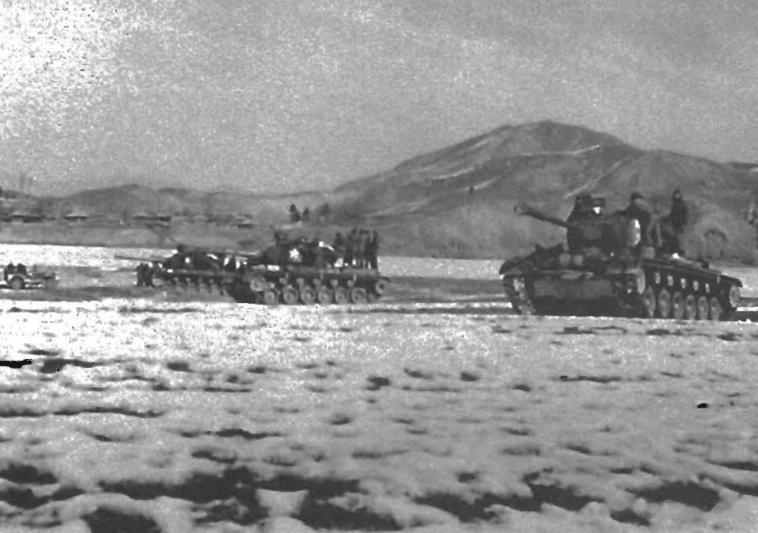 14时许,远处尘土冲天,公路尽头处开始出现美军第2师72 装甲团1营C 连3辆M46坦克,随着坦克越来越来越近,发动机和履带的铿锵声的轰响声也越来越大,