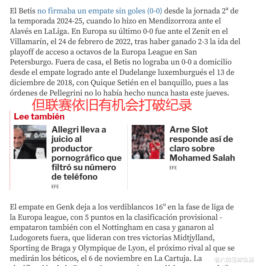 这一平局也阻止了他们打破1996~1997赛季以来各项赛事连续33场进球的纪录,但他们在联赛中是追平了队史连续28场进球纪录,本场如果取得进球,便能创造新的历史。