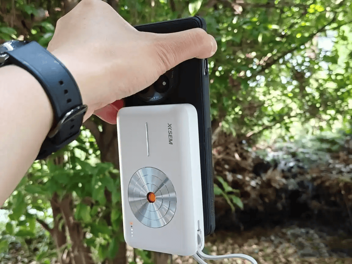 在磁吸方面采用18颗N52H高强度磁铁,悬空吸附,非常稳固。还支持自带线20W快充和磁吸15W,双向快充功能使得充电和放电速度都大幅提升,充电速度是市面部分共享充电宝的2倍,还可以同时为多台设备充电,搭配PD疾速快充,30分钟就能充满55%,非常适合出差或旅行时使用。