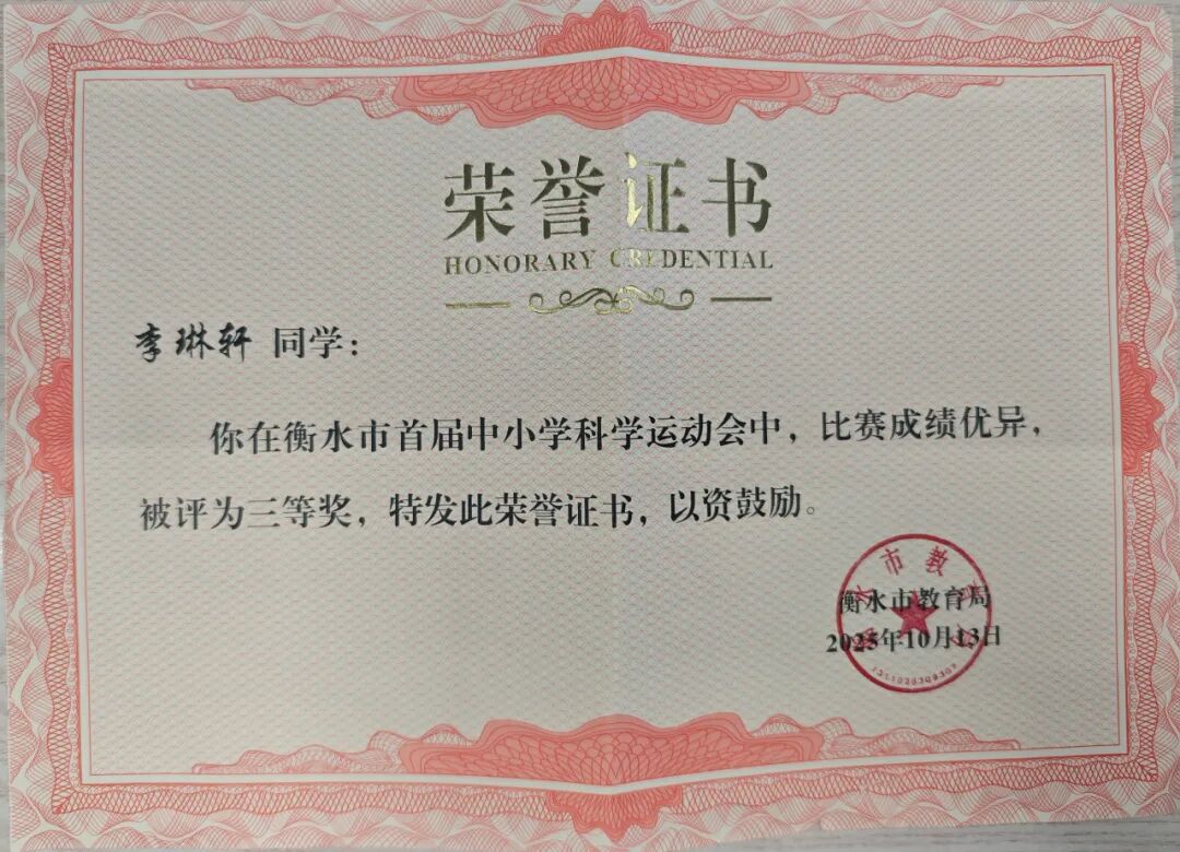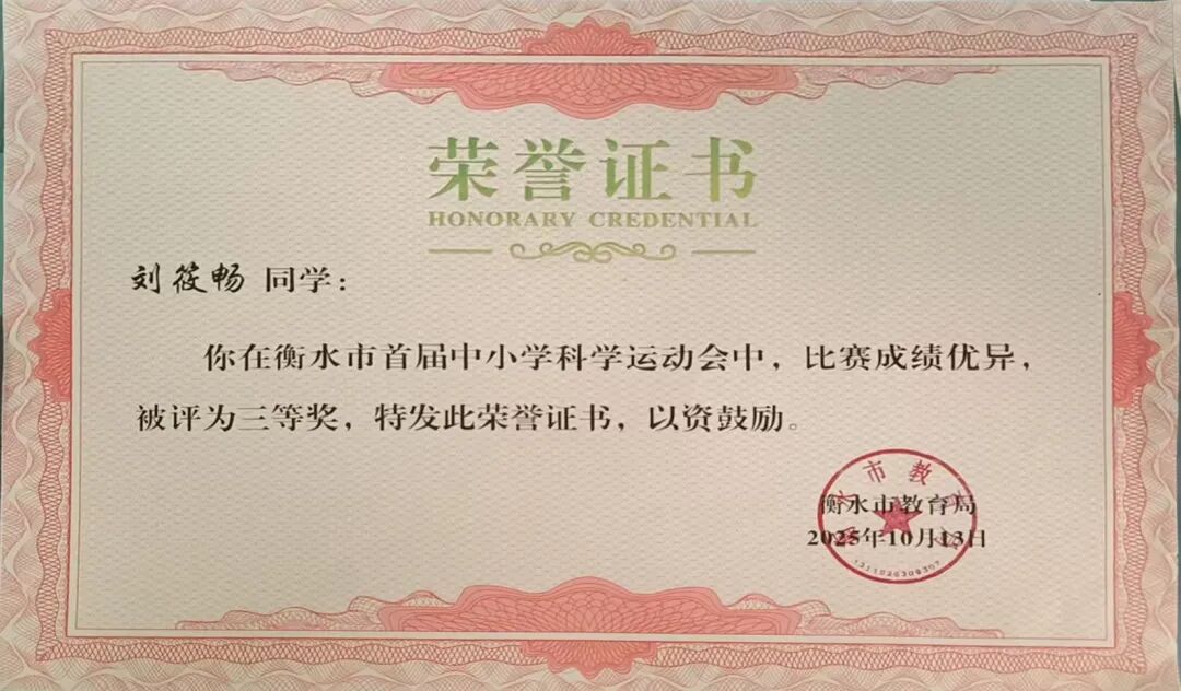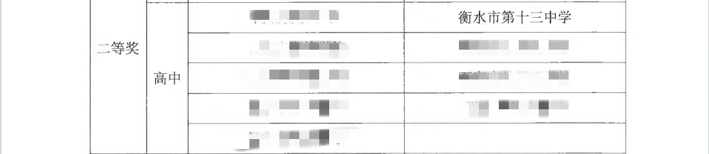 在河北省第四届学生军事训练营比赛中,衡水十三中荣获国防知识竞赛二等奖、轻武器实弹射击二等奖、识图用图比赛三等奖和团体三等奖的优异成绩,该校学生聂博文荣获优秀营员称号;在河北省教育厅主办的河北省第35届“雏凤杯”中小学生作文大赛中,王少华同学荣获优秀奖;在河北省第十届微课大赛省市两级评选中,李超敏老师荣获市级三等奖;在衡水市首届中小学科学运动会上,李琳轩、刘筱畅、李冠成、任轩德、候昕杭、田家诚、董昱含等七位同学荣获三等奖;在衡水市教育局主办的“燕赵杯”成语故事主题书画篆刻大赛中,学生张雨诺的作品《围魏救赵》荣获中学组软笔类三等奖。