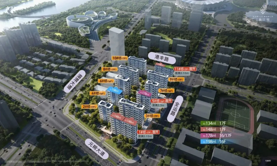 本次加推的3栋楼,6#、7#楼为16F,面积约178-293㎡,均价约2.33-2.43万元/㎡。9#楼17F,面积约147㎡,均价22036元/㎡。