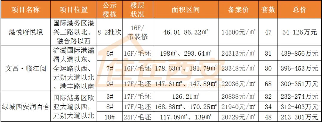 10月23日,西安3盘290套房源公示一房一价。价格公示项目全部位于浐灞国际港,分别为港悦府悦境、文昌·临江阅、绿城西安润百合。