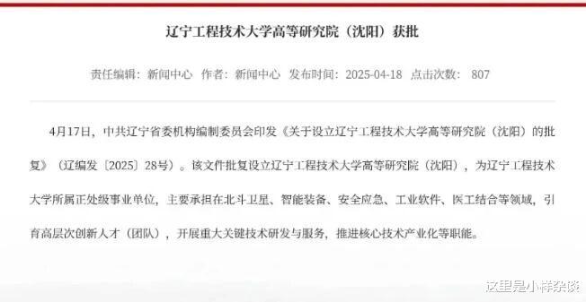 这些年辽宁工程技术大学也在改变这种现状,先是办了个葫芦岛兴城校区,又一直积极东进沈阳,这些年和沈阳没少眉来眼去,但是一直没有实际动作。在今年4月份,辽宁工程技术大学高等研究院(沈阳)获得有关部门批复,从此这个项目走上了飞一般的流程。