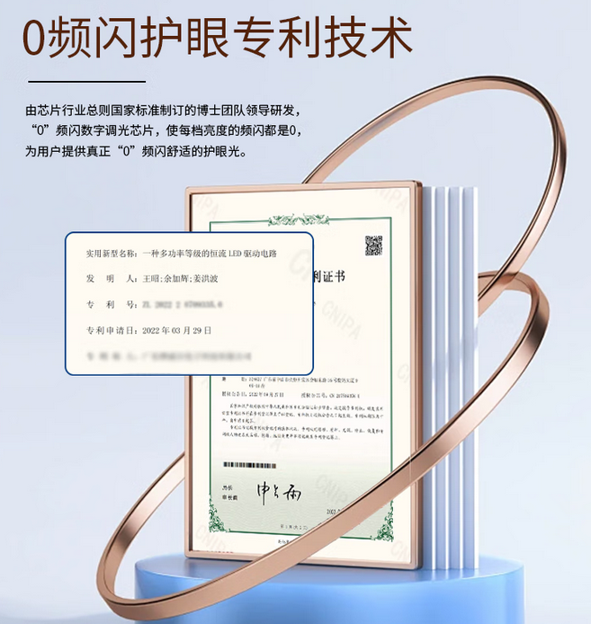 无可视频闪从字面意义上理解,是指人眼察觉不到灯光的闪烁,但实际上灯具的光输出频率并不是0。根据国家标准,读写作业台灯的光输出频率应该大于3125HZ,此时光波动频率早已经超出人眼神经感知上限,所以人眼察觉不到灯的闪烁,也就不会轻易出现眼睛干涩、头 痛等因频闪引起的健康问题。