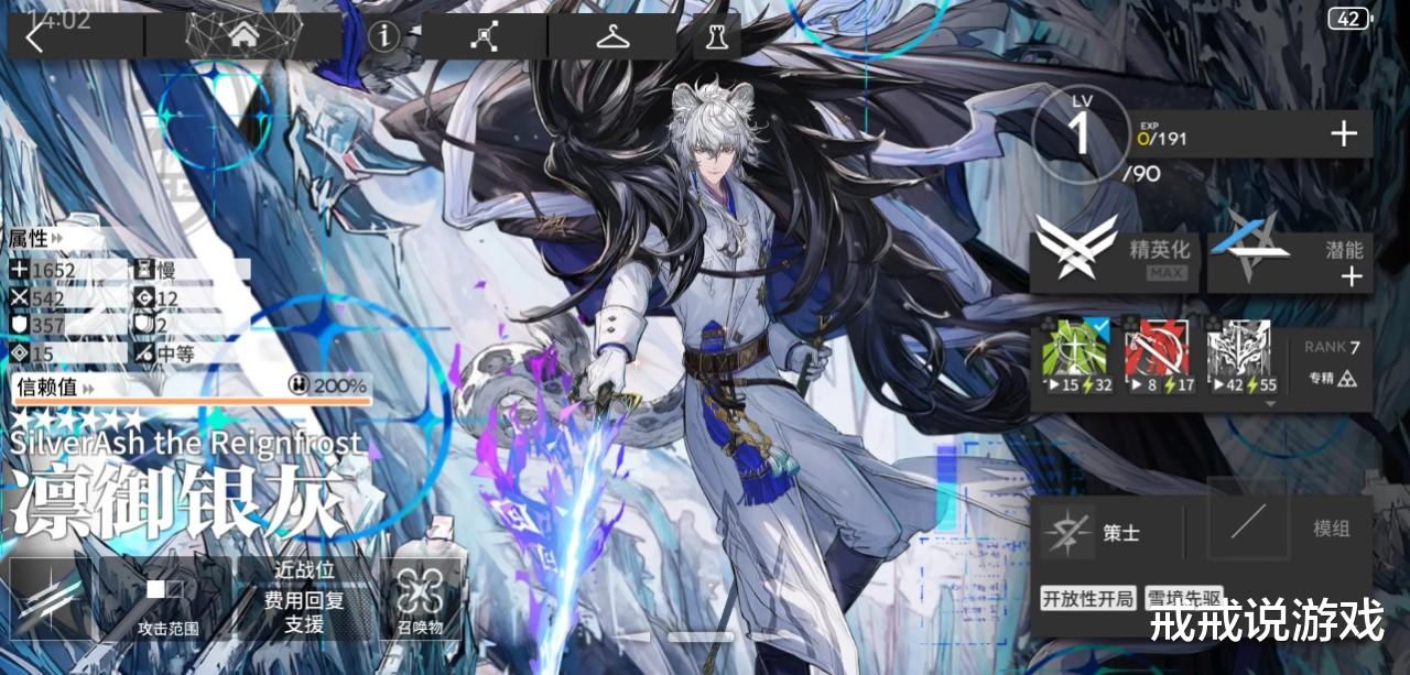 二天赋“雪境先驱”,可以为自身和所有谢拉格干员提供免疫冻结、防御力提升、自然恢复生命的效果。凛御银灰的面板防御力优秀,二天赋使自身落地就有约500防御,驻场15秒使天赋效果翻倍后达到约600,已经达到了重装级别,能单独抵挡部分需要重装才能处理的敌人。