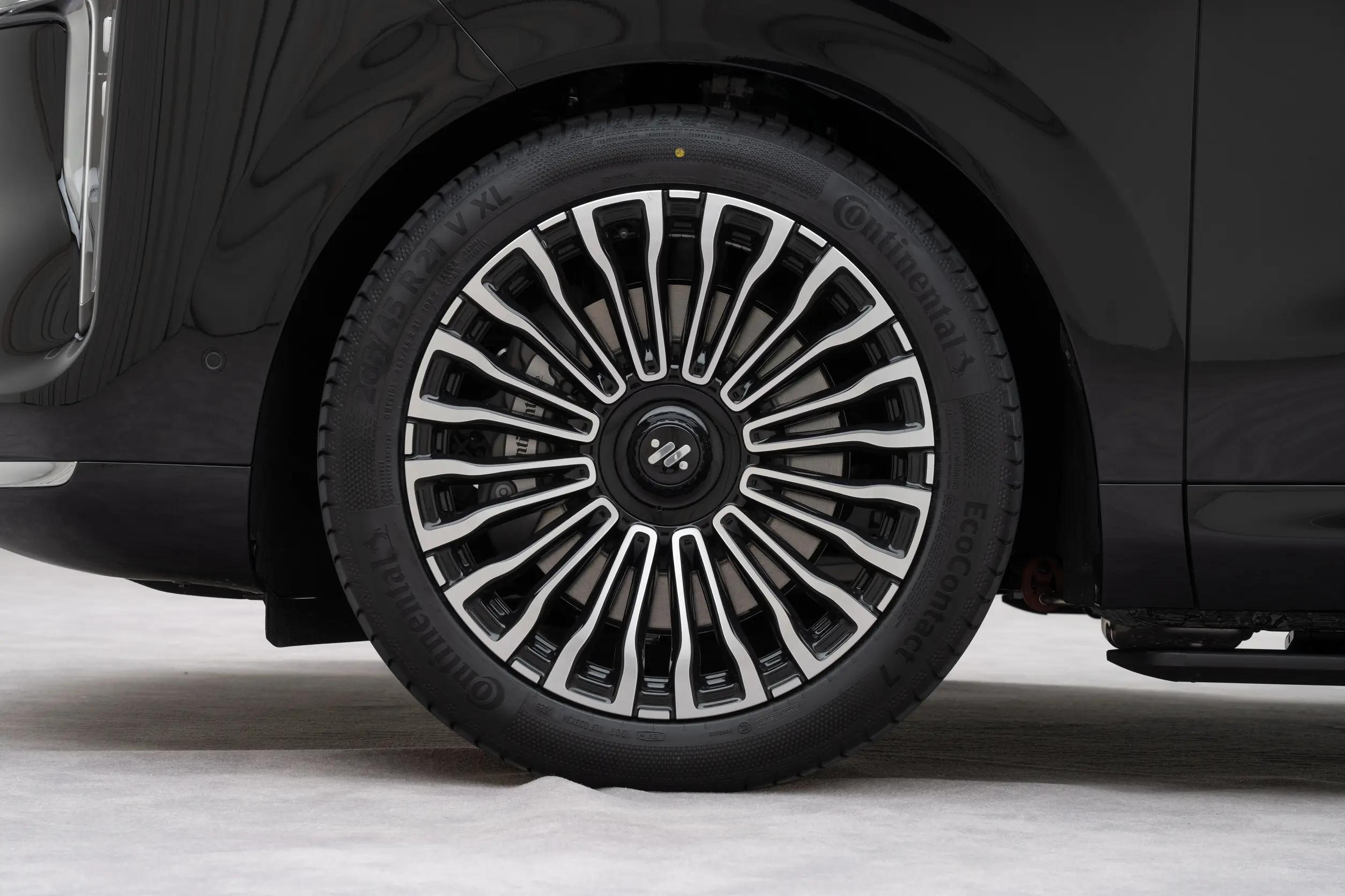 这台车的底盘配置比较扎实,搭载线控转向和双向24°智慧四轮转向,转向手感轻盈顺滑,完全没有想象中大型SUV的笨重感。我特意在市区老小区和狭窄路段试了试,这台超5米长的SUV,转弯半径仅4.85米,比家用小型车Polo还要灵活,窄车位基本能一把停进去,不用来回揉库,早晚高峰掉头也很顺畅,很好地解决了中大型SUV操控不便的问题。低速时方向盘半圈就能打满,高速时转向则比较沉稳,兼顾了灵活性和稳定性,和同级别8系车型相比,驾控体验有一定优势。除此之外,它还配备德国大陆MKC2线控制动系统、前双叉臂+后五连杆悬挂以及超大行程闭式空悬,开起来扎实平稳,驾乘质感不错。
