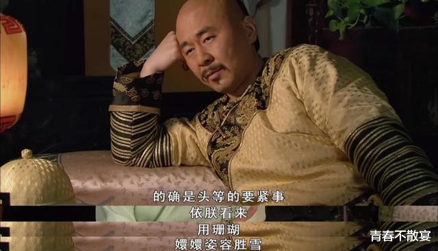 皇上心里有些不解,但还是认真履行自己后宫时尚顾问的职责,说道:"这事确实很重要。按我的想法,用珊瑚装饰最好。嬛嬛本就肤白如雪,眉间点缀一抹红色,更显得活泼动人。"