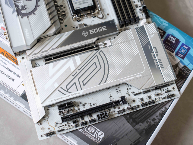微星 MPG Z890 EDGE TI WIFI 刀锋钛主板采用标志性纯白色PCB,搭配大面积银白色第二代冰霜铠甲,真正实现从基底到装甲的全白化设计,彻底满足白色主题装机的审美追求。ATX标准板型结合凌厉的切割线条,在简约中透出强劲性能感。