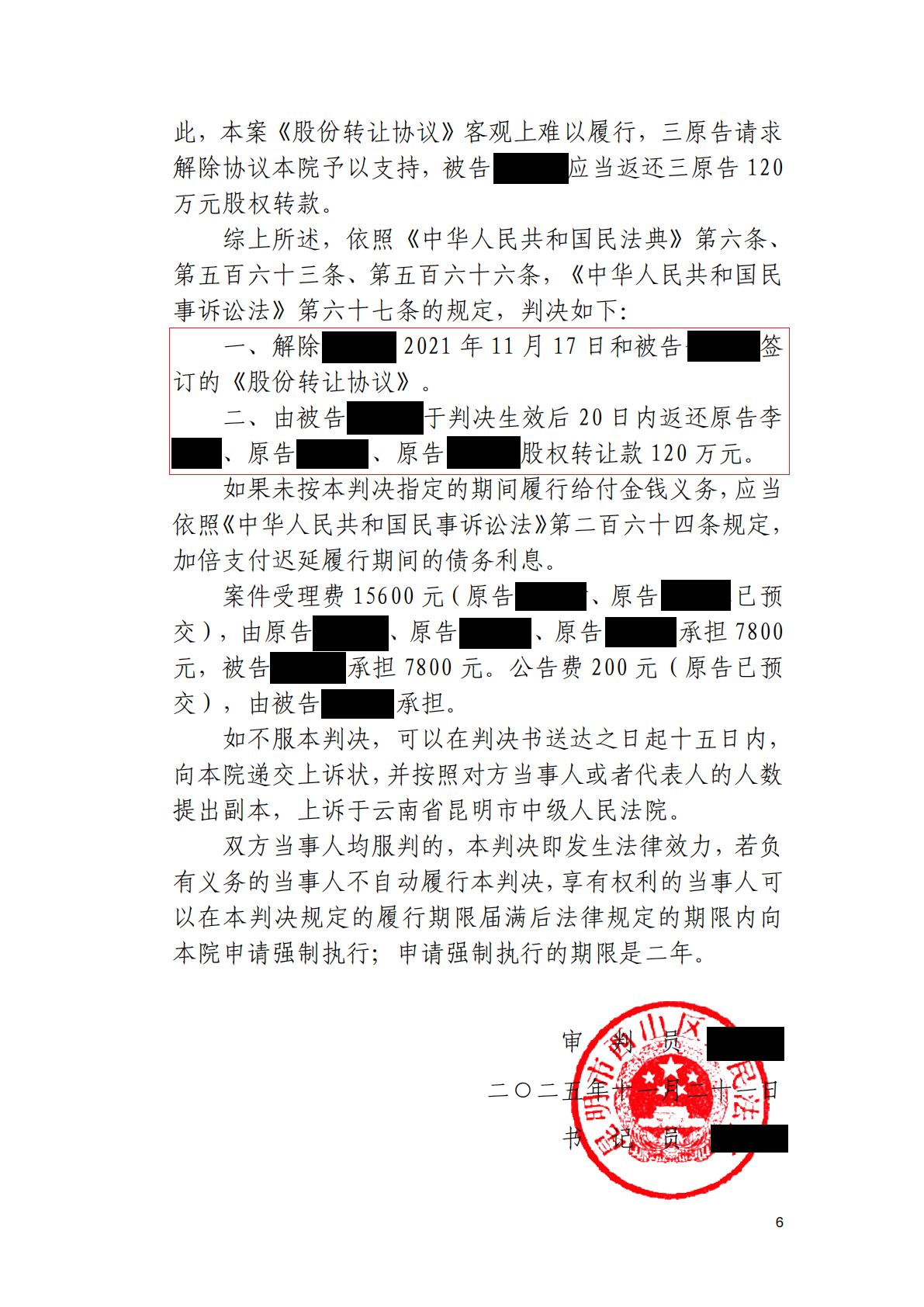 近日,云南省昆明市西山区人民法院就一起备受关注的股权转让继承纠纷案作出一审判决,全面采纳原告方诉讼请求,判决解除涉案《股份转让协议》并由被告返还已支付股权转让款120万元。该案由北京市中恒信律师事务所马晓雅、李晓梅律师团队代理原告方,其通过精准的法律论证与卓越的诉讼策略,在看似不利的案件局面中,为当事人赢得了关键的胜诉判决。