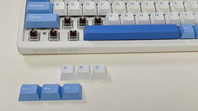 而对于实际的按键手感上我相信经常用机械键盘的小伙伴应该都非常熟悉青轴和红轴的敲字和游戏体验,而我们这次的联想激光方案的三模机械键盘GK10用的则是相对稳定的茶轴轴体。