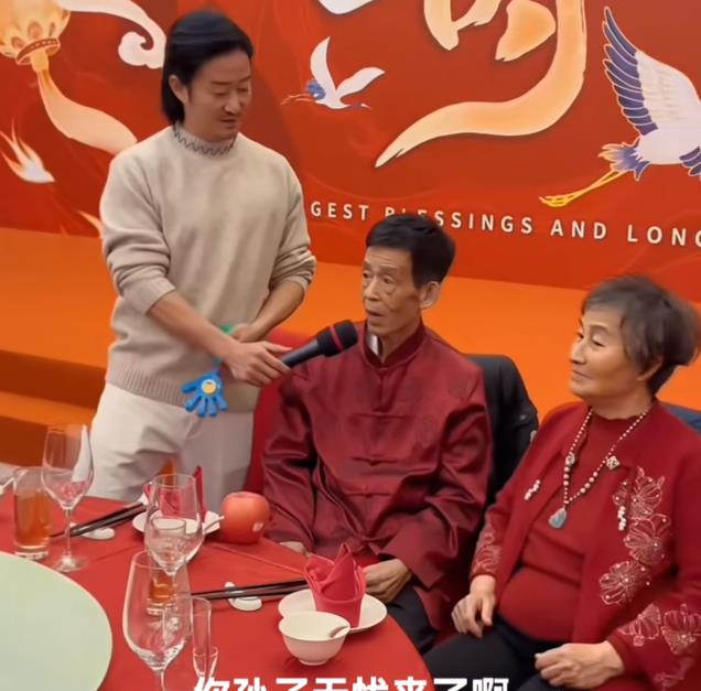 既然是家庭重要的节日,两个儿子也罕有现身,不过对比来说,小儿子的教育真的是非常优秀,在爷爷吴树下台的时候,吴虑贴心上前扶着爷爷的腰,生怕其跌倒,吴京则跟在后面搀扶其肩膀,三代同框的画面温馨满满。