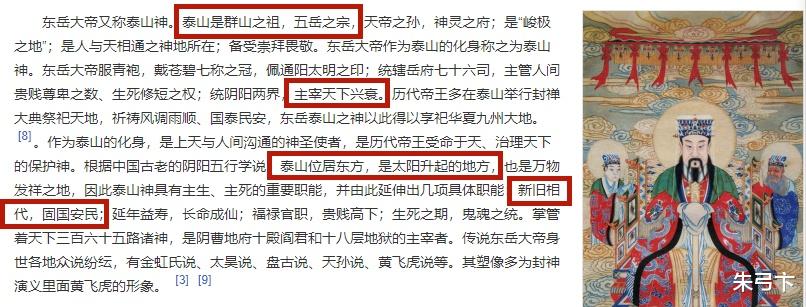 东岳大帝又称泰山神。泰山是群山之祖,五岳之宗,是人与天相通之神地,备受崇拜畏敬。东岳大帝统阴阳两界,主宰天下兴衰。历代帝王多在泰山举行封禅大典祭祀天地,祈祷风调雨顺、国泰民安。泰山位居东方,是太阳升起的地方,也是万物发祥之地,因此泰山神具有主生、主死的重要职能,并由此延伸出几项具体职能:新旧相代,固国安民;延年益寿,长命成仙;福禄官职,贵贱高下;生死之期,鬼魂之统。泰山神掌管着天下三百六十五路诸神,是阴曹地府十殿阎君和十八层地狱的主宰者。