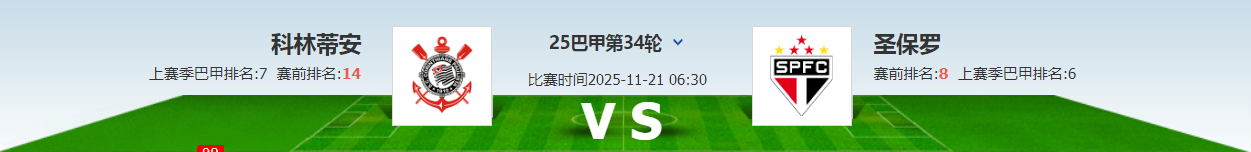 巴甲第34轮继续进行,本场比赛由主场的科林蒂安迎战圣保罗。科林蒂安目前取得了11胜9平3负的成绩,积42分排在第13位;圣保罗目前取得了12胜9平12负的成绩,积45分排在第9位。
