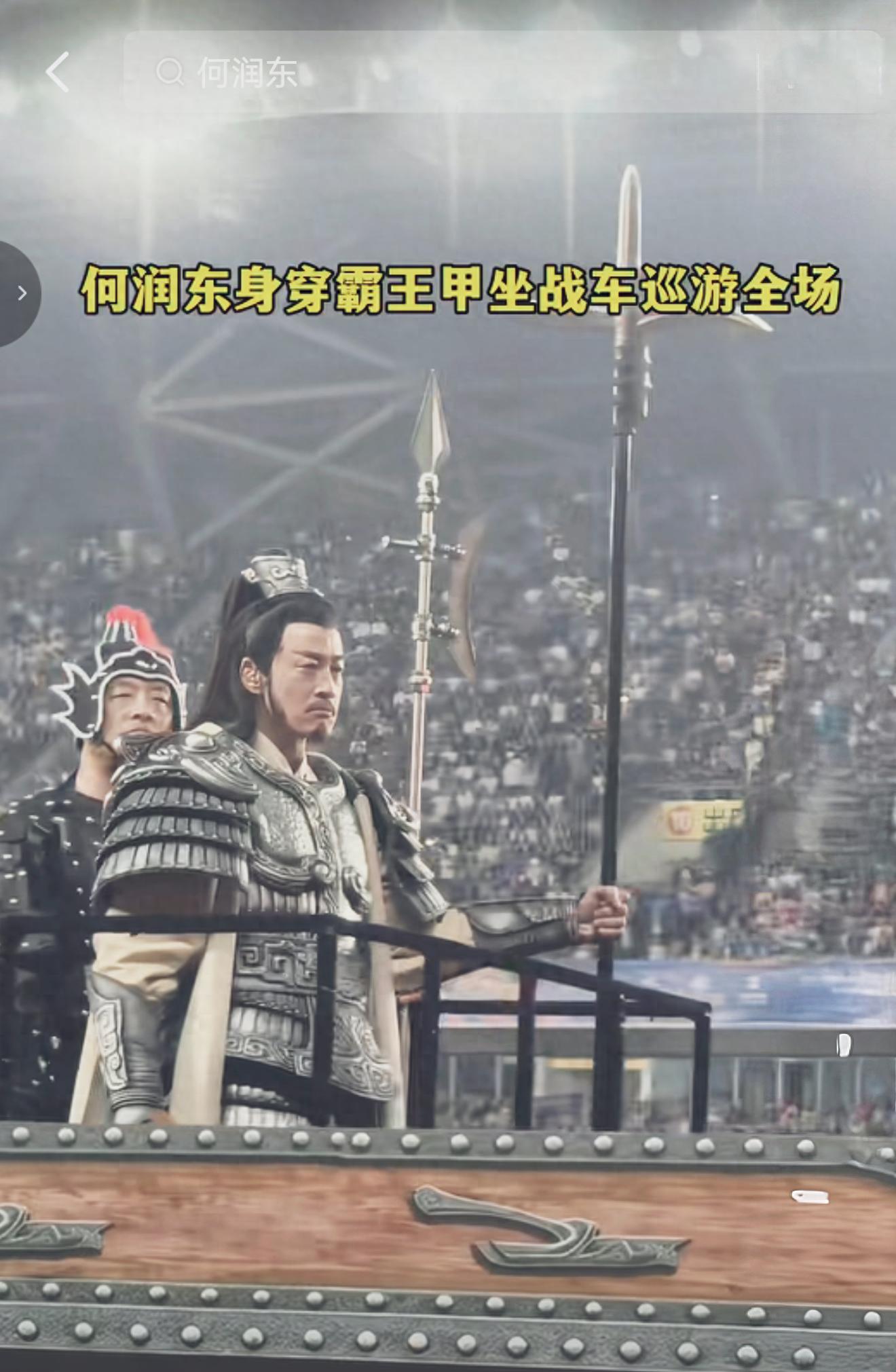 他身披霸王铠甲,手持长戟,驾战车绕场,多次高呼“宿迁子弟何在!”,点燃全场,让人热泪盈眶: 2000多年,霸王回来了!
