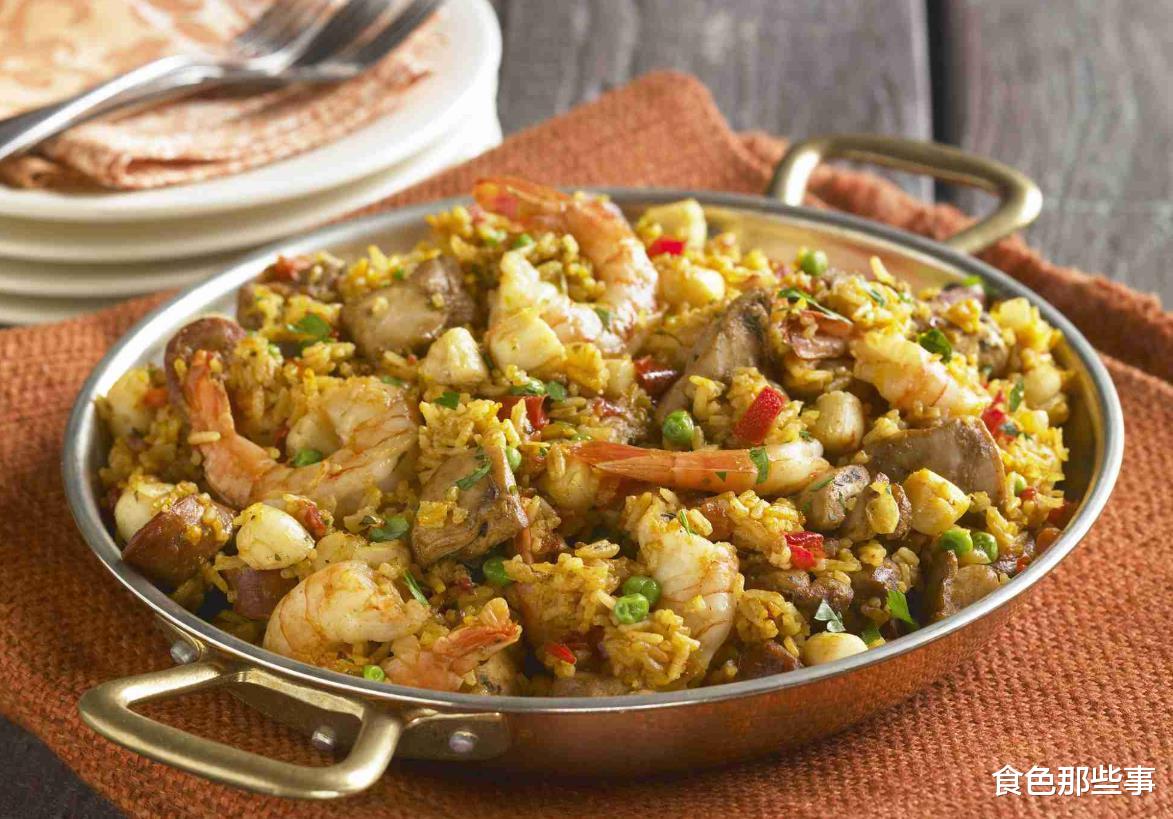 正宗的瓦伦西亚海鲜饭并没有海鲜,而是兔肉和鸡肉。真正的海鲜饭版本,其实是后来沿海地区改良的结果。