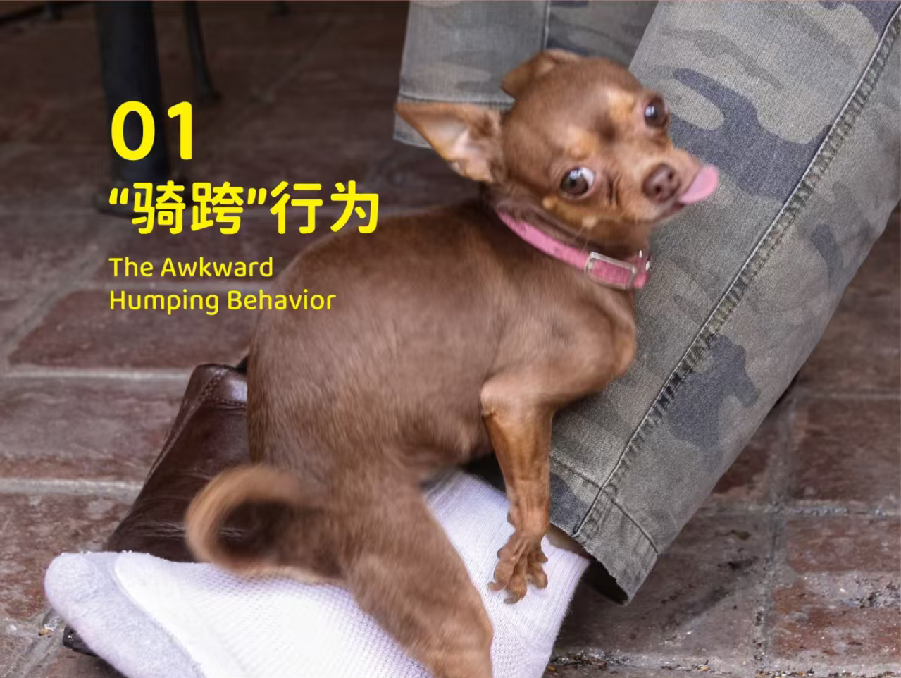 当你带它去宠物店、或者家里来了一堆客人时,它感到超级紧张或兴奋!这个让你社死的动作,只是它释放压力的方式!就跟人一紧张就抖腿一模一样!