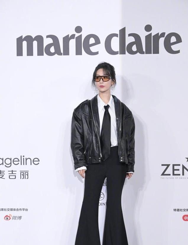 尽管如此,杨幂的时尚感依然在线,皮衣皮裙搭配黑丝高跟,性感又充满活力,不愧是“红毯女王”。