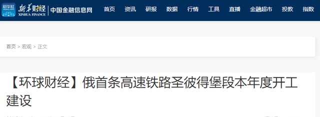 3月6日,俄罗斯圣彼得堡副市长透露称,境内莫斯科-圣彼得堡高速铁路中心段将于本年内开工建设。
