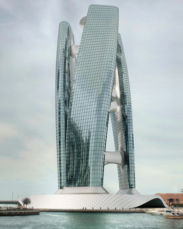 暴风塔的外形相当特别,由三栋曲面塔身组合而成,线条流畅得像被风打磨过一样,据说这样能减少转动时的阻力。
