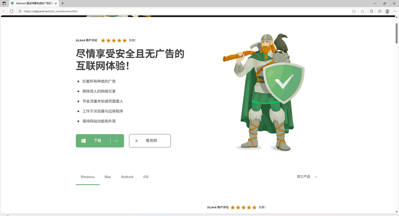 四、AdGuard这是一个可以屏蔽所有广告的网站,只需点击安装,然后打开防护按钮,像这样满是广告的页面直接就能被清理得一干二净,只剩下有用的信息。它不仅能去除网页广告,搜索页面广告、平台推荐广告也能去除,甚至连有些影视平台的开头贴片广告,它也能去除。多种设备都能使用,且完全免费。