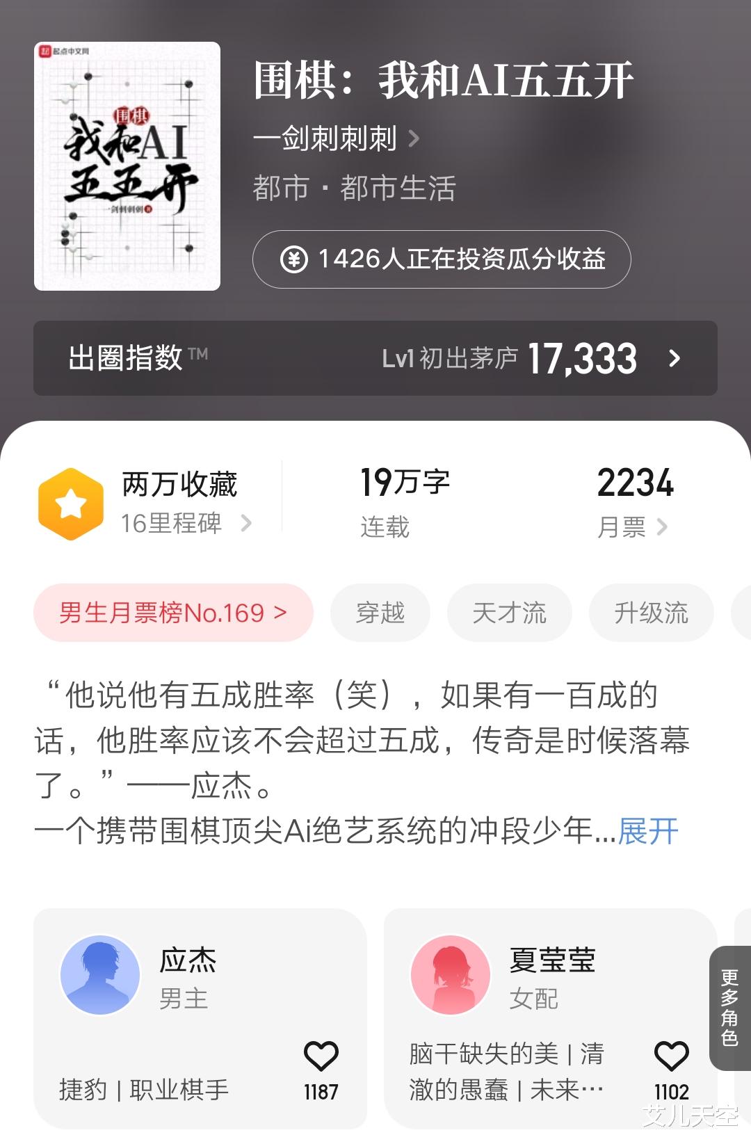 我还是第一次在起点看到围棋小说能写到这个成绩的,之前倒是看到过一些棋魂同人,但都比较小众,没啥成绩,其他围棋作品就更不用说了。